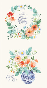 Bloom Wildly Light Cream Floral Panel by Heatherlee Chan for Clothworks