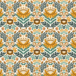 Clara Jane Mustard Floral Fabric by On The Mark Designs for Cotton and Steel