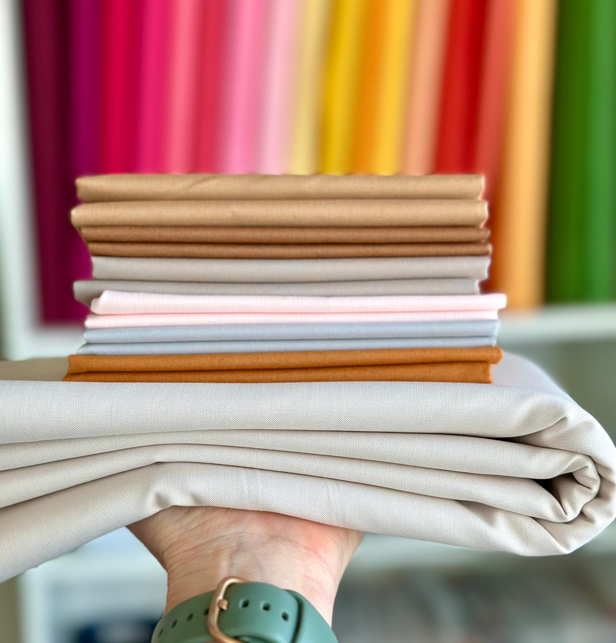 Fabric: Riley Blake Confetti Cotton Solids-color matched to the sample quilt as accurately as possible. Background is Latte, an off white/clay color similar to the quilt shown in the listing.
