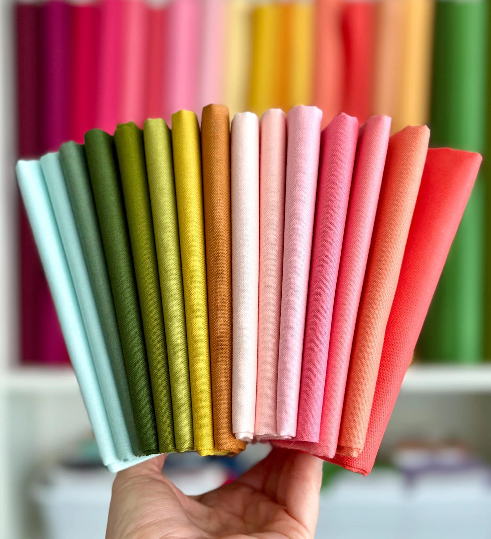 Fabric is Riley Blake Confetti Cotton Solids. Background is a dark navy blue.