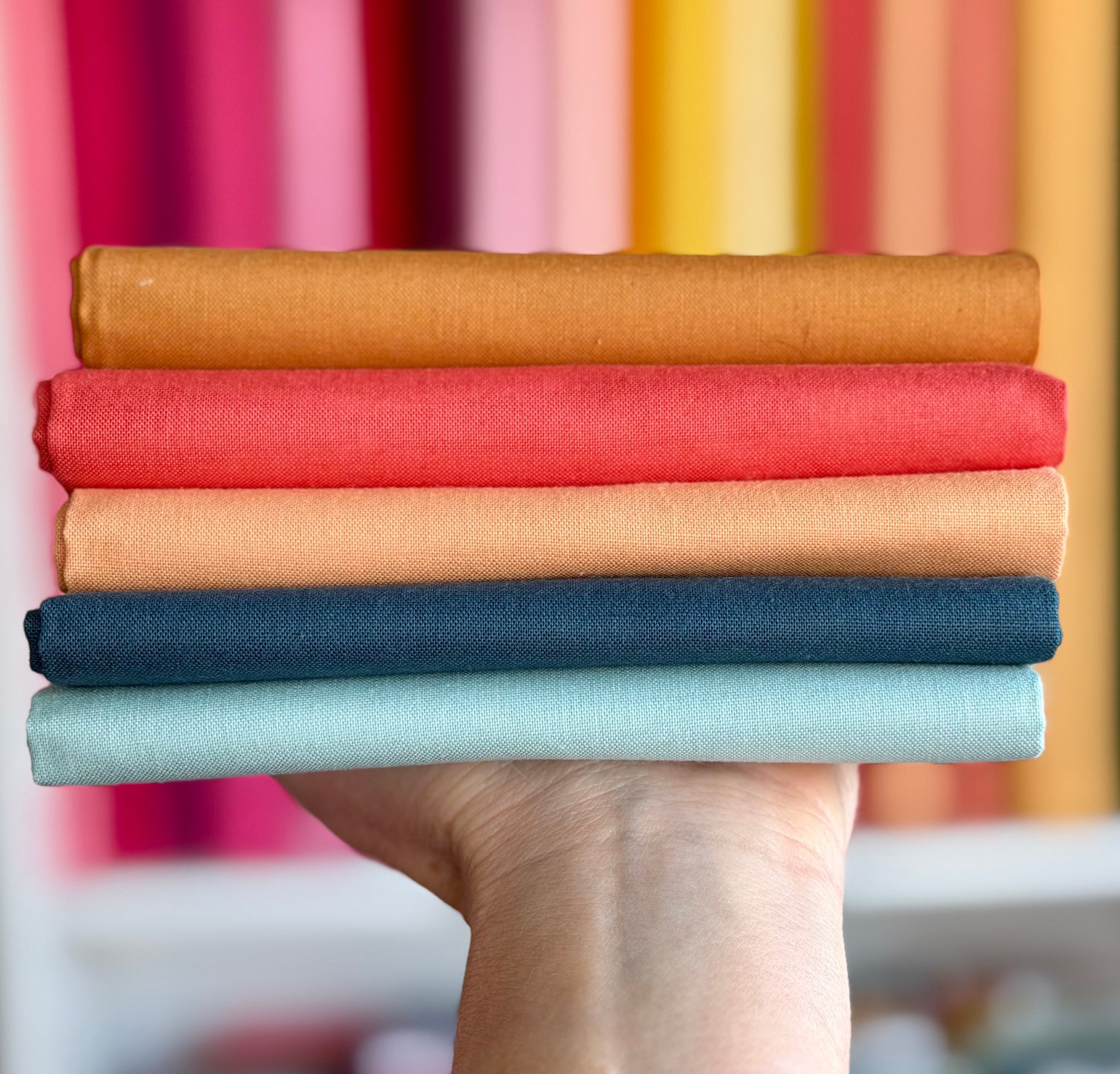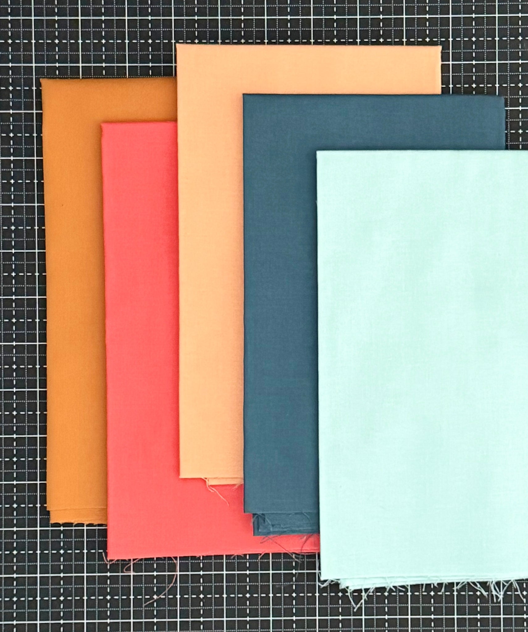 Solid fabric kit is Riley Blake Confetti Cotton Solids. Background is white.