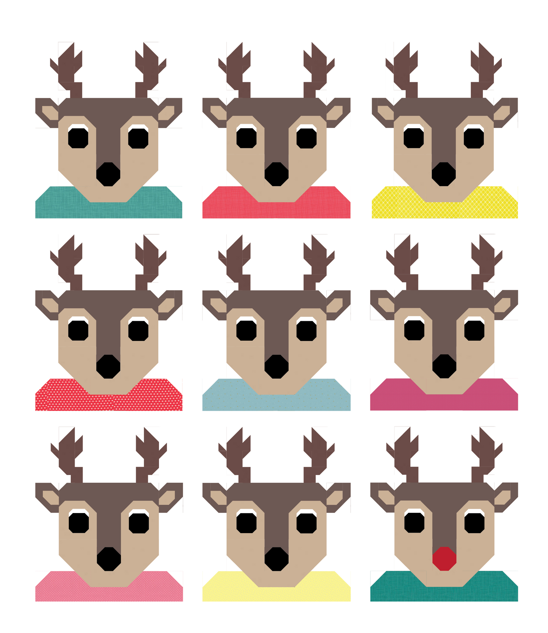* All fabrics for the top and binding-see images for actual "sweater" fabrics for each reindeer.