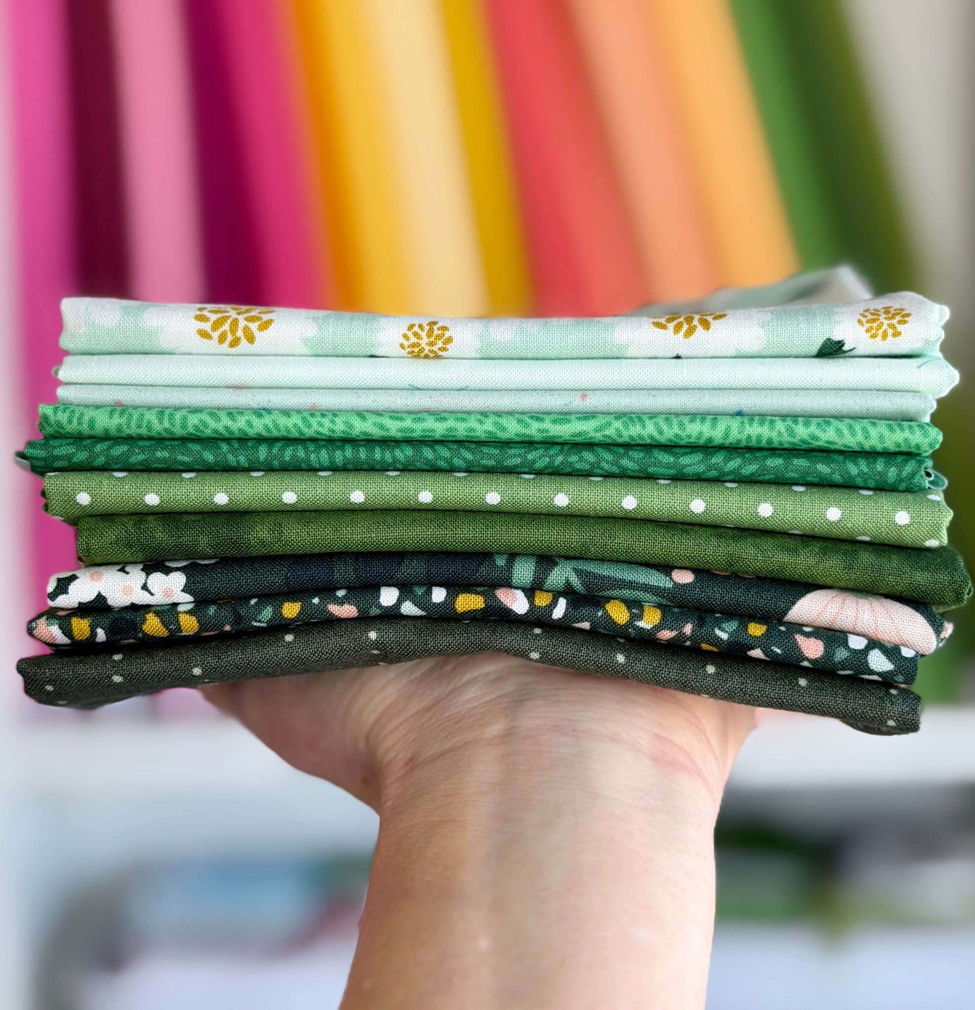 Bundle includes 10 quilt shop quality fat quarters (18" by 21")