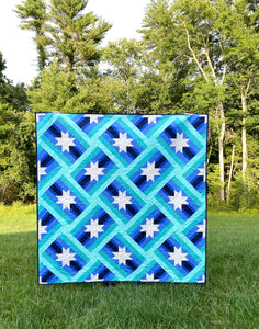 Aqua Blue Slanted Star Quilt Kit by Sewcial Stitch 4 size options