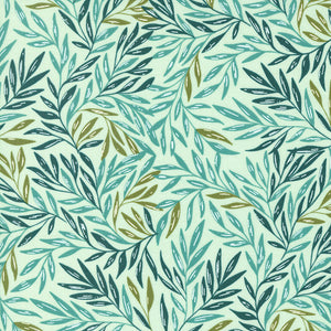 Willow Aqua Leaf Fabric by 1 Canoe 2 for Moda Fabrics
